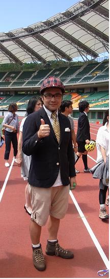 この大会は、メインが自転車に乗る事なので特に男性陣は服装に関して、やっつけ仕事的なコーディネートになることが多いのですがこのレディーはそこのところを手抜かりのないどころか、さらなる次元へと昇華させています。
