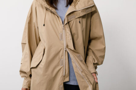 前合わせは、上下から開閉できるダブルジップ仕様。湿気がこもらないよう調整しやすい。雨除けのフラップが装着されており、走行中にジップ部から浸水するのを防ぐ。フラップや袖口のアジャスターには一般的な面ファスナーではなく、着脱時に音のしないブロックテーピーを採用する。